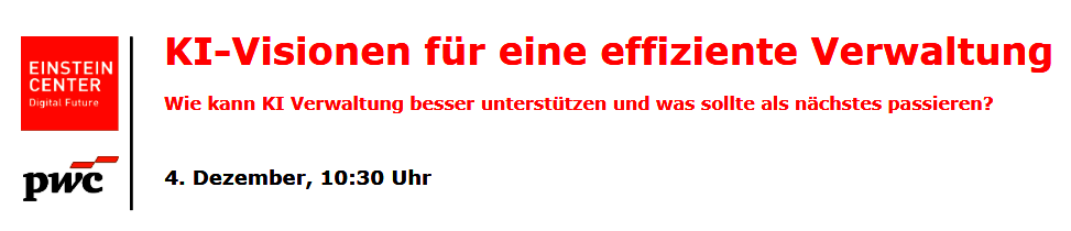 Genau hier setzt die gemeinsame Veranstaltung am 4. Dezember 2025 von PwC und dem ECDF zum Thema „KI-Visionen für eine effiziente Verwaltung: Wie kann KI Verwaltung besser unterstützen und was sollte als nächstes passieren?“ an. Wir möchten nicht nur über technologische Visionen sprechen, sondern konkrete Wege identifizieren, wie KI-Anwendungen schneller, sicherer und nutzerorientierter in der Praxis ankommen können. Vor diesem Hintergrund schlagen wir vor, das bestehende Leitmotiv des neuen Digitalministeriums #WirMachen um #WirMachenZusammen zu erweitern. Um diese Perspektive zu stärken, bringen wir unterschiedliche Perspektiven aus Politik, Verwaltung, Wissenschaft und Wirtschaft zusammen. Ziel ist es, einen Tag voller Austausch, Impulse und Lösungsansätze zu bieten.